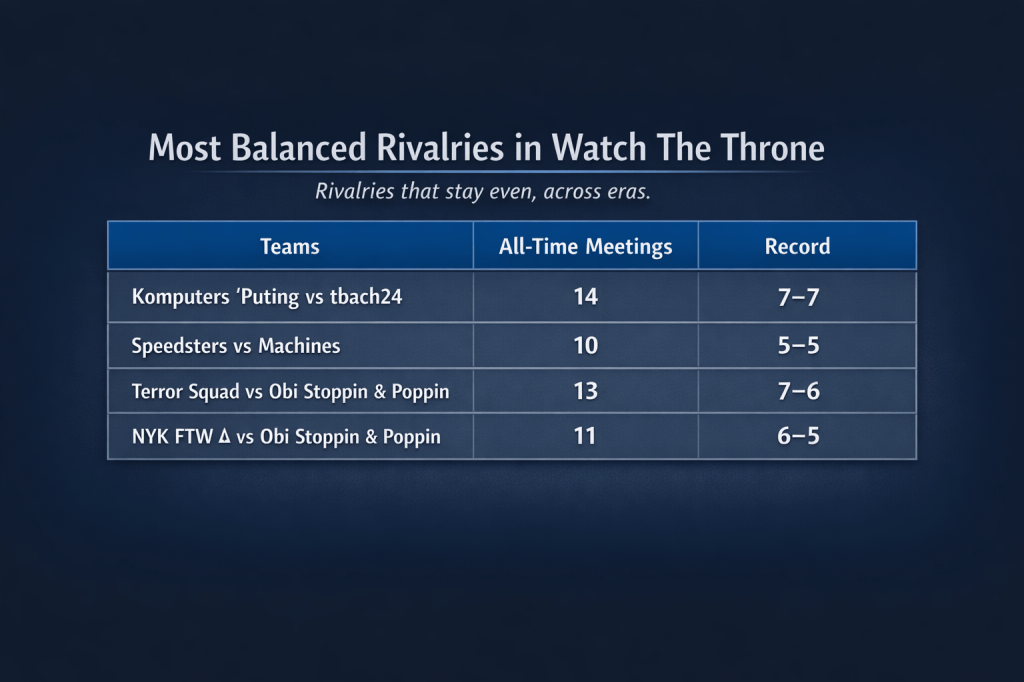 What follows are the rivalries that define WTT — measured not by perception, but by volume, balance, and playoff consequence.