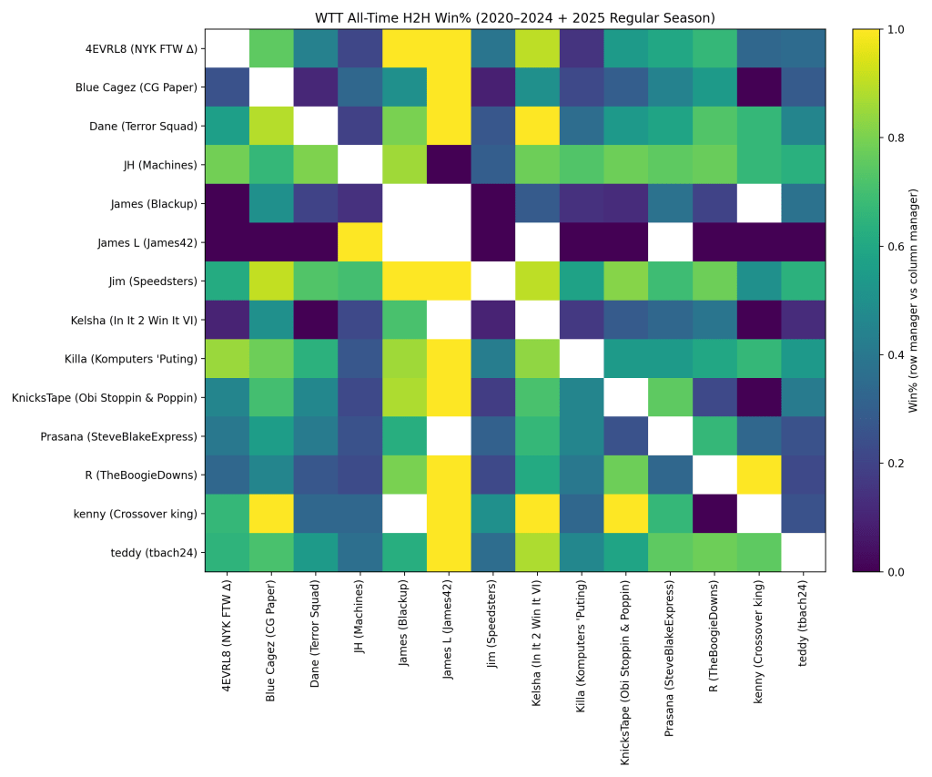 These matchups are grind-heavy, category-tight, and exhausting. Assists swing late. Turnovers loom all week. Neither side ever feels in control.